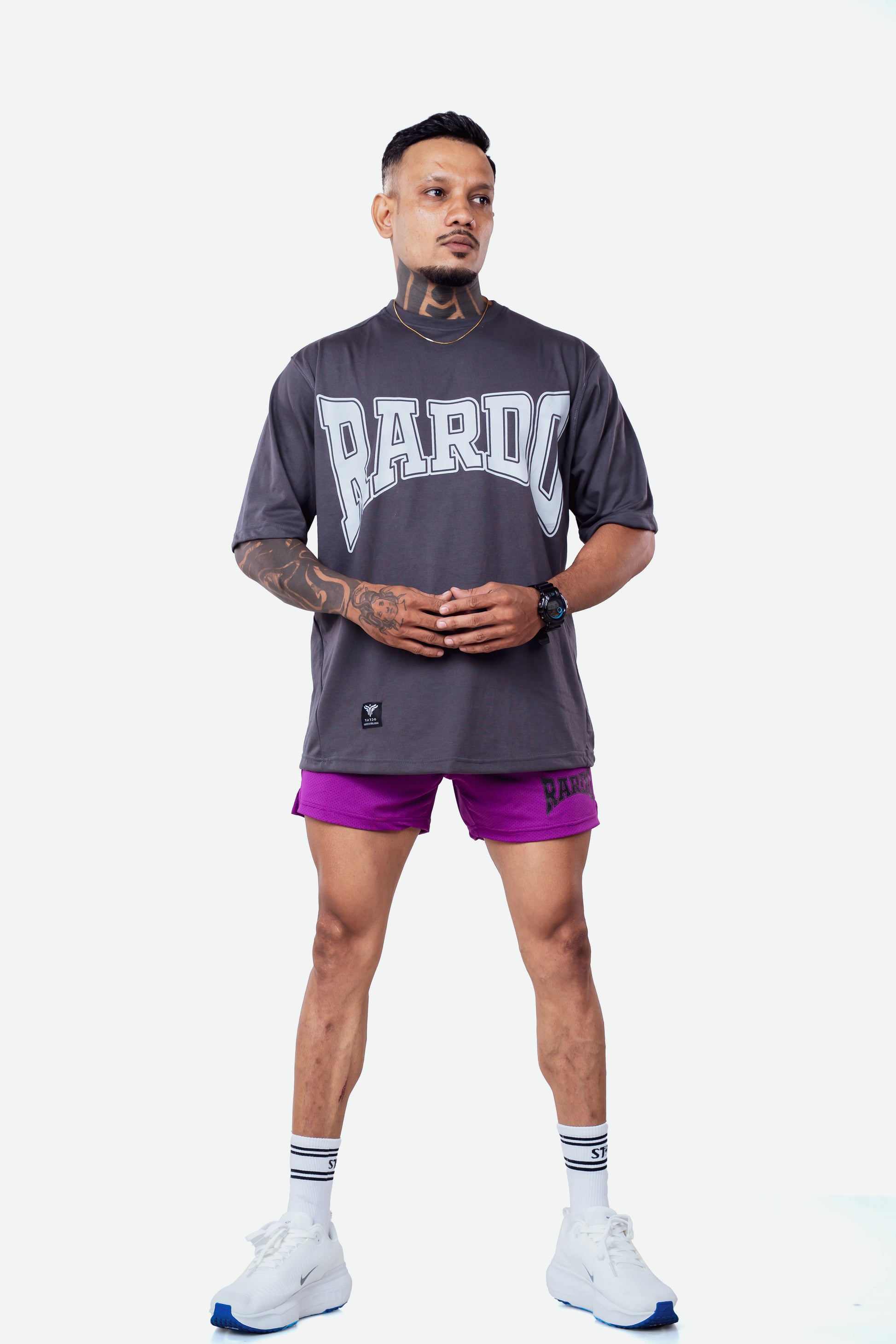 Introducing the RARDO RAGE Oversized Tee in sleek black. Made for the fierce and unstoppable, this tee features the motto “Strength speaks ~ Style stares” to represent the raw power and bold fashion of Rardo Rage. Designed for those who train like beasts and dress with fire, this tee is oversized, unbothered, and unmissable